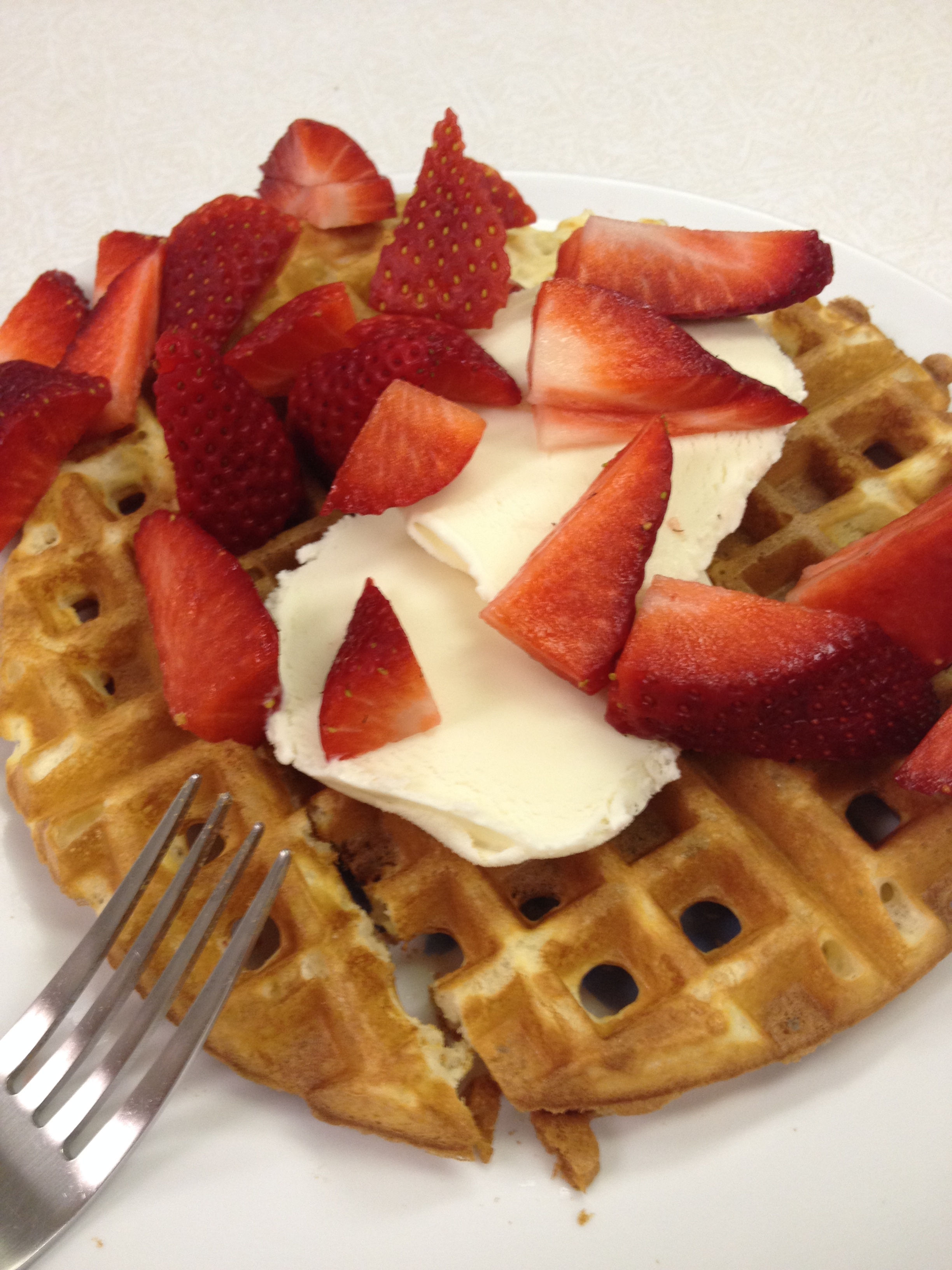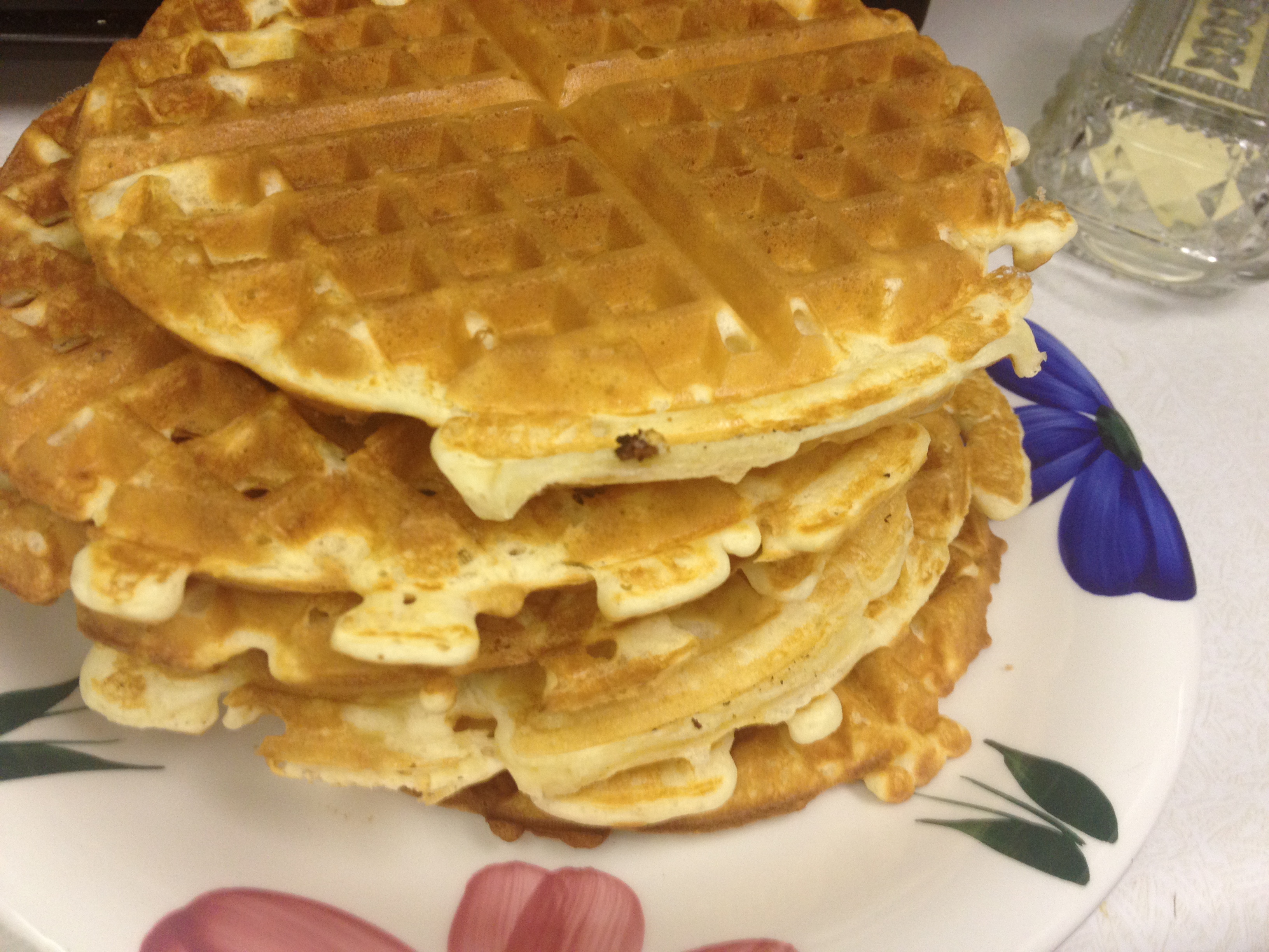 Yet, my Dad had a specialty in the kitchen growing up- waffles. I’m not sure how the tradition started, but I recall in the mid-80’s our kitchen on Saturday mornings filled with the irresistible scent of waffles and maple syrup. Dad’s waffles didn’t come from a box; he made them from scratch and cooked each one to order. He used a recipe called “Oh Boy” Waffles from a stained 30-year old cookbook. As the waffles rose in the iron, he would admonish the waffles: “Rise you sucker, rise!” Needless to say, we were a happy family on waffle weekends with the delicious treats and commentary. Dad always had his with peanut butter and jam, which I tried to like (but didn’t). I stuck with butter and syrup, and branched out to fruit and ice cream.